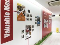 新文化墙的设计以醒目的红色为主题颜色,与公司徽标的颜色保持一致,为超过5米长的墙壁走廊赋予了鲜明的感觉。